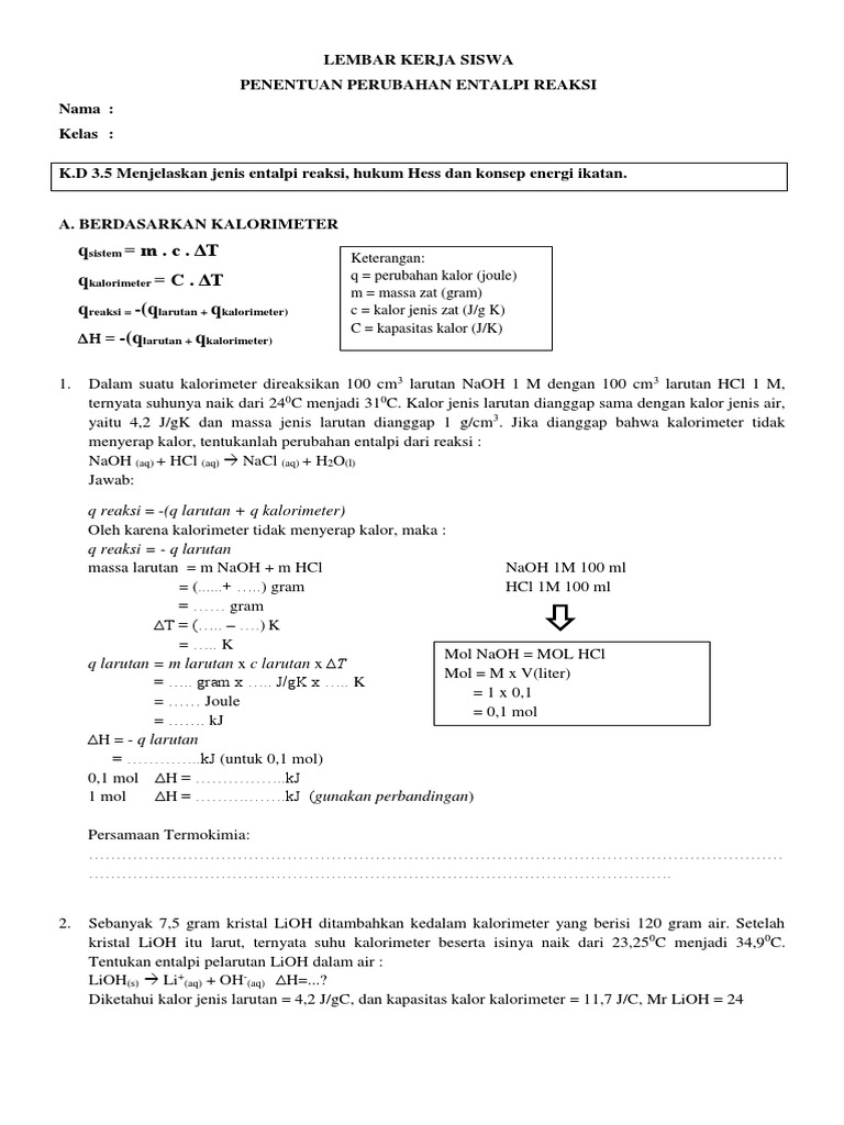 Ke dalam kalorimeter sederhana direaksikan 25 ml. We did not find results for: Check spelling or type a new query. Maybe you would like to learn more about one of these?