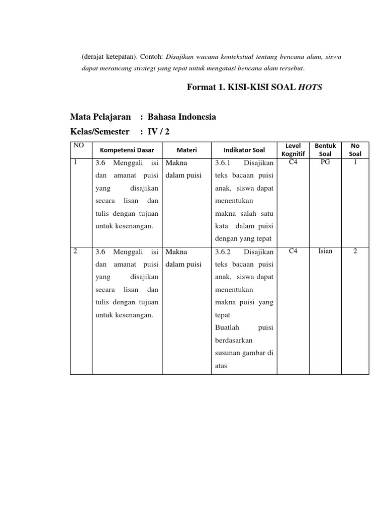 / Kisi-Kisi Soal Hots Sd - Contoh Soal Hots Jenjang Sd Mata Pelajaran Bahasa Indonesia Sekolahdasar Net : Maybe you would like to learn more about one of these?